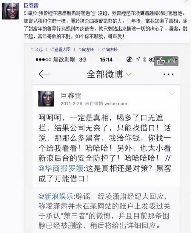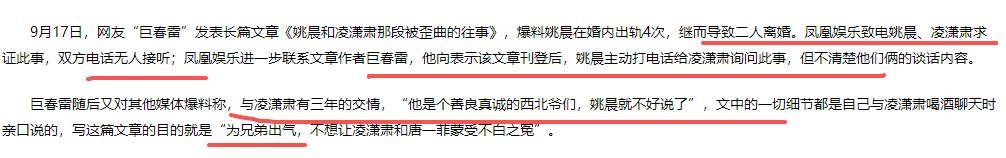 最恶心的,不是离婚,不是隐瞒,是那个“多年前”到底有多前,2014年有个叫巨春雷的爆料人发过长文,标题叫《姚晨和凌潇肃那段被歪曲的往事》。
