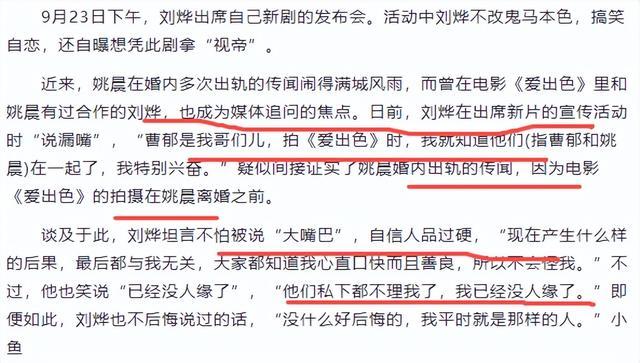 后来事情全面爆发之后,刘烨这话也被翻出来过,但他自己也没否认,更是表示现在产生什么样的后果,最后都与我无关。