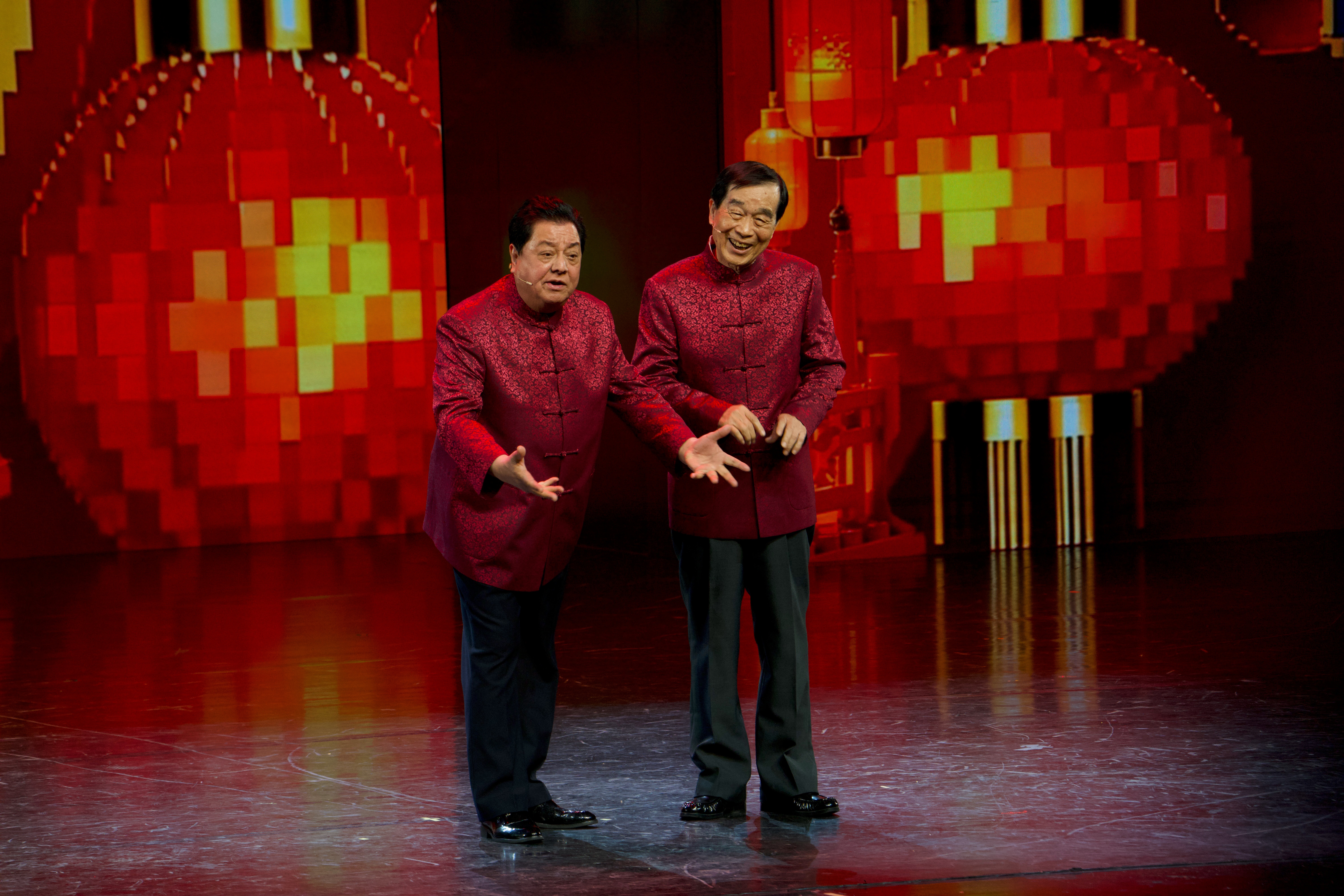 石富宽、李金斗在“铁路相声大会”上表演节目。路炳阳/摄影