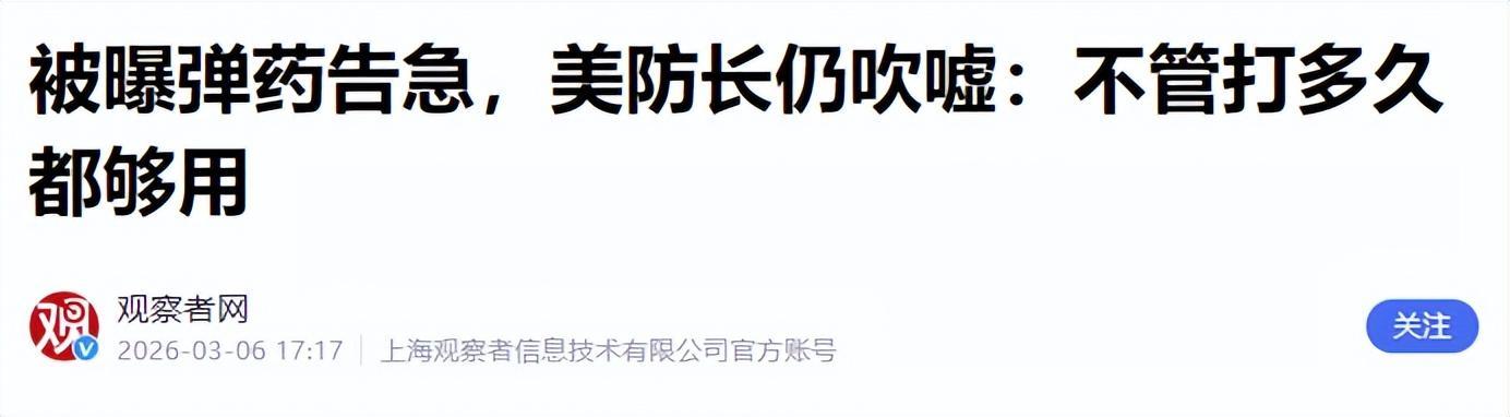 而且这还不是美国唯一的麻烦。另一个越来越明显的问题,是军力和弹药消耗。路透社这几天的报道已经很清楚,美国对伊朗的打击不是象征性动作,而是高强度、持续性的压制。